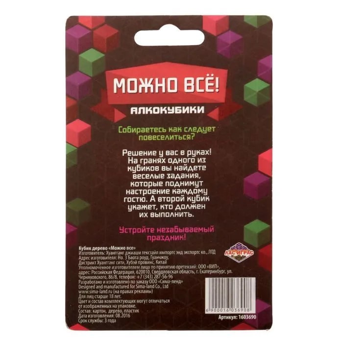 Купить кубик "можно все", алкокубики для принятия решений от 60 руб. с доставкой до пункта выдачи в Абакане. Интернет магазин ДекаМаркет. Оплата при получении.
